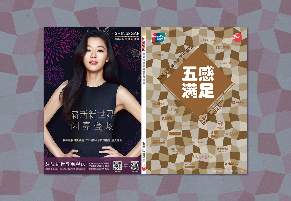 중국관광객을 위한 [필수 쇼핑가이드북] 중국 현지와 국내에서 동시 발행되며 쇼핑, 관광, 스타일, 한류스타 등 다양한 읽을거리와 270여개 가맹점 정보를 수록한 가이드북입니다. 발행부수: 300,000부 [한국 15,000부, 중국 15,000부] 발행주기: 계간지 [3월, 6월, 9월, 12월] 언어구성: 중국어(간체) 분량: 총 240페이지 판형: 145x210mm