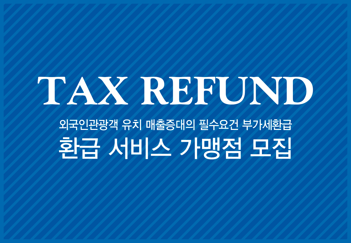 [Tax Refund] 외국인관광객이 국내에 지정된 면세판매장에서 3만원 이상의 제품을 구입하여 3개월 이내에 출국할 경우, 이를 수출로 간주하여 물품에 부과된 내국세인 부가가치세(VAT)와 개별소비세(ICT)를 환급해 주는 서비스 입니다.